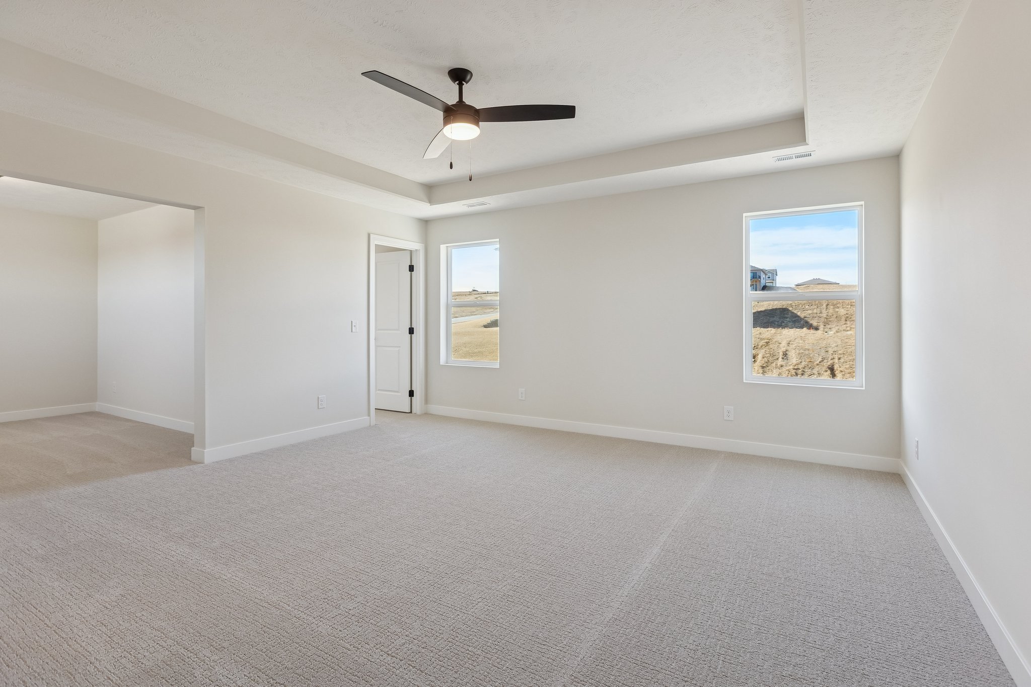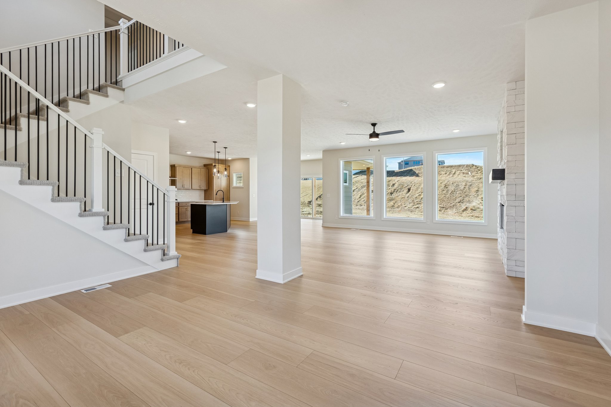 The Santa Clara is the largest two story built by The Home Company! 5 beds, 3 bath, 3 car 3173sf. The modern exterior and spacious expanded porch greet you on the drive up, and the full black spindles staircase as your enter shows why this open floor plan fits all your needs! Expanded hidden pantry, vented exhaust hood, a fireplace surround with shelves, a main floor bedroom give your main floor many options for your living space! The second floor bedrooms each have walk-in closets, and all bathroom have Quartz. The Primary Suite boasts a walk-in shower along with a sitting area off of your sleeping area and 2 huge walk-in closets! This stunning home is situated on a flat lot with easy access to a future walking trail entrance. AMA