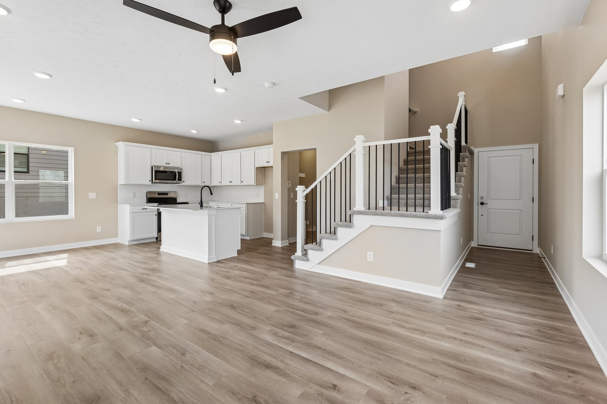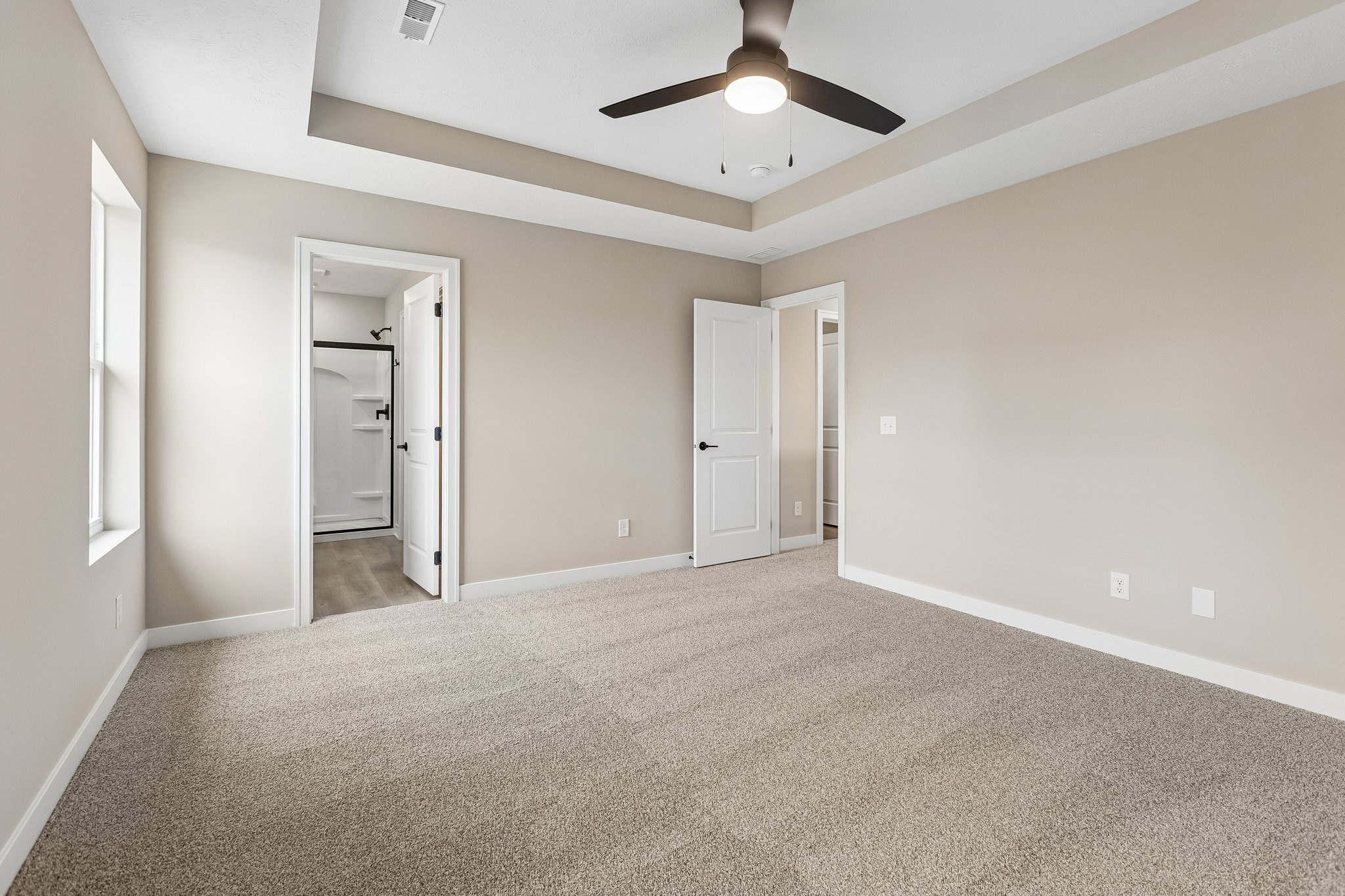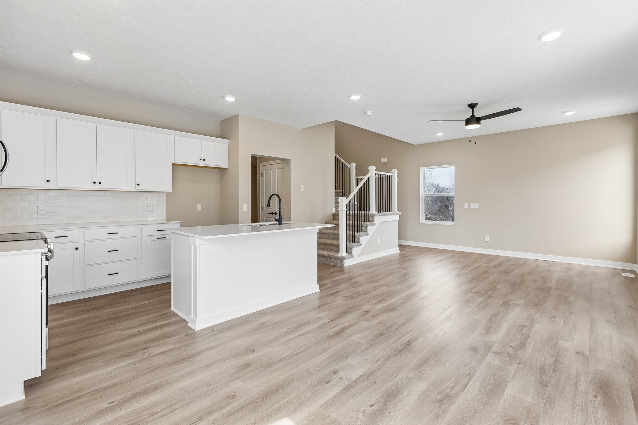 New construction Carter floor plan built by The Home Company on a flat, west-facing lot. This home features 3 bedrooms, 4 bathrooms, and a 2-car garage. Two-story entry welcomes you into an open-concept layout. The kitchen offers quartz countertops, stainless steel appliances, a 3×6 subway tile backsplash, and a pantry. Upstairs includes all three bedrooms, second-floor laundry, and a spacious primary suite with a tray box ceiling, 3/4 bath with dual vanity, shower and walk-in closet. The finished lower level adds a rec room and 1/2 bath, providing additional living space.