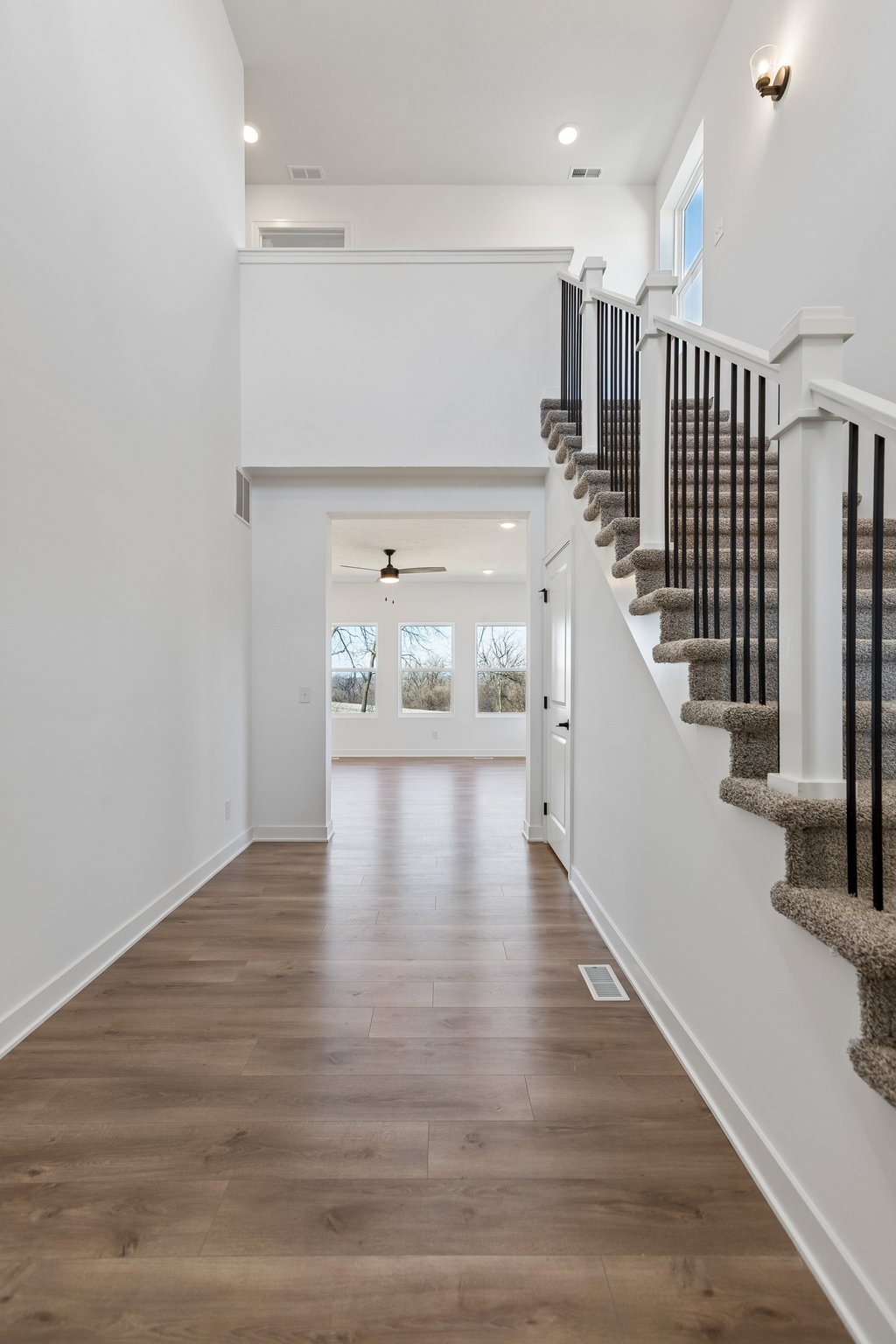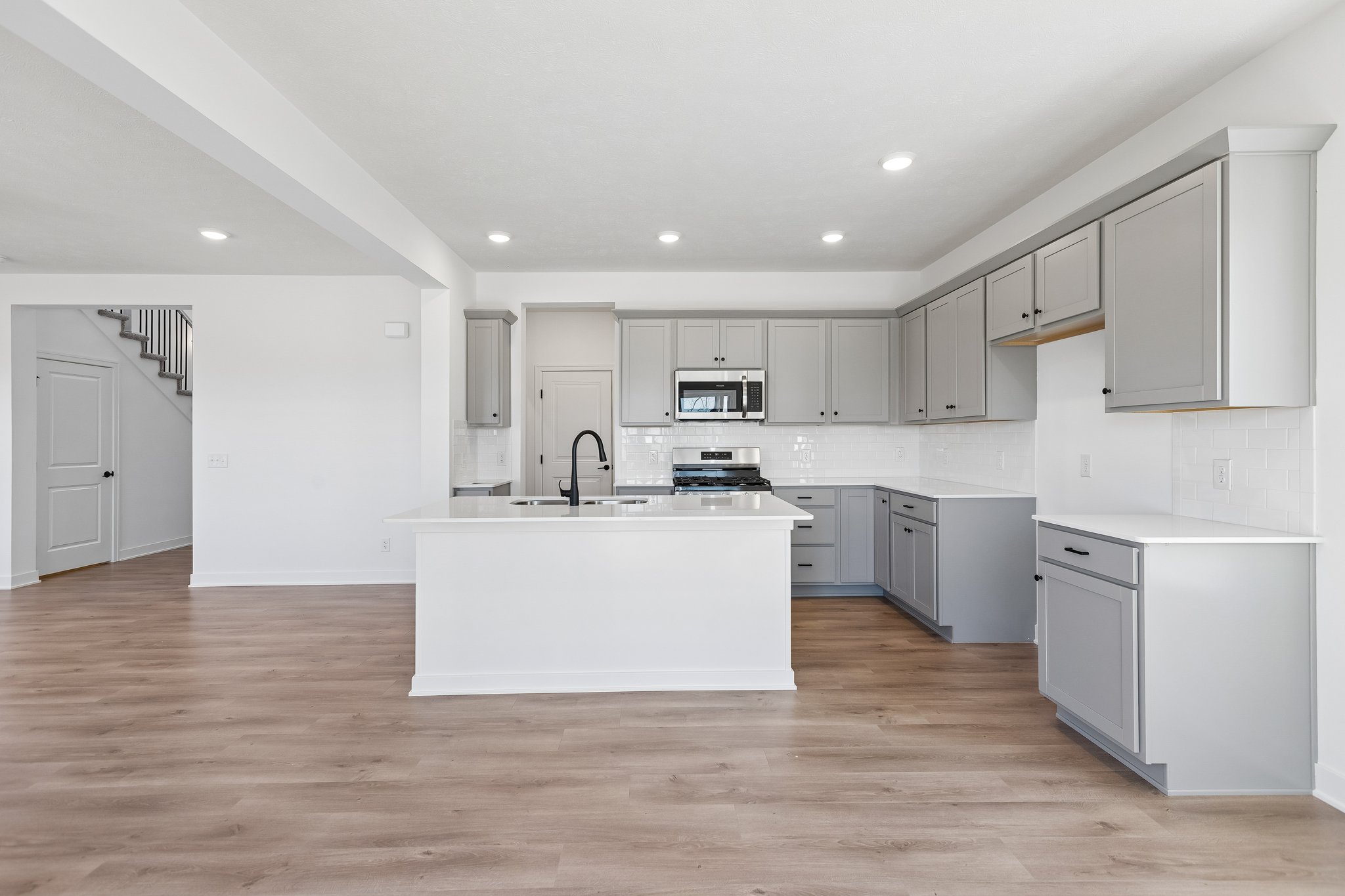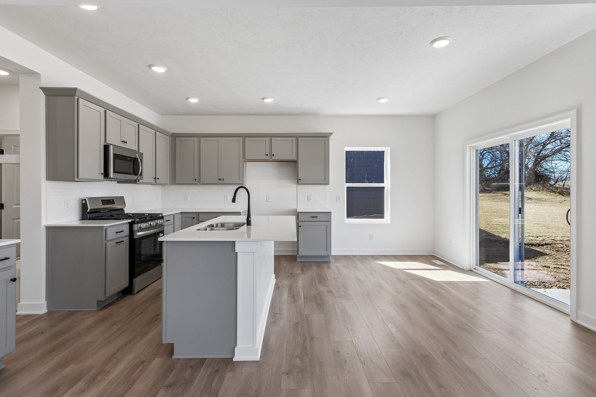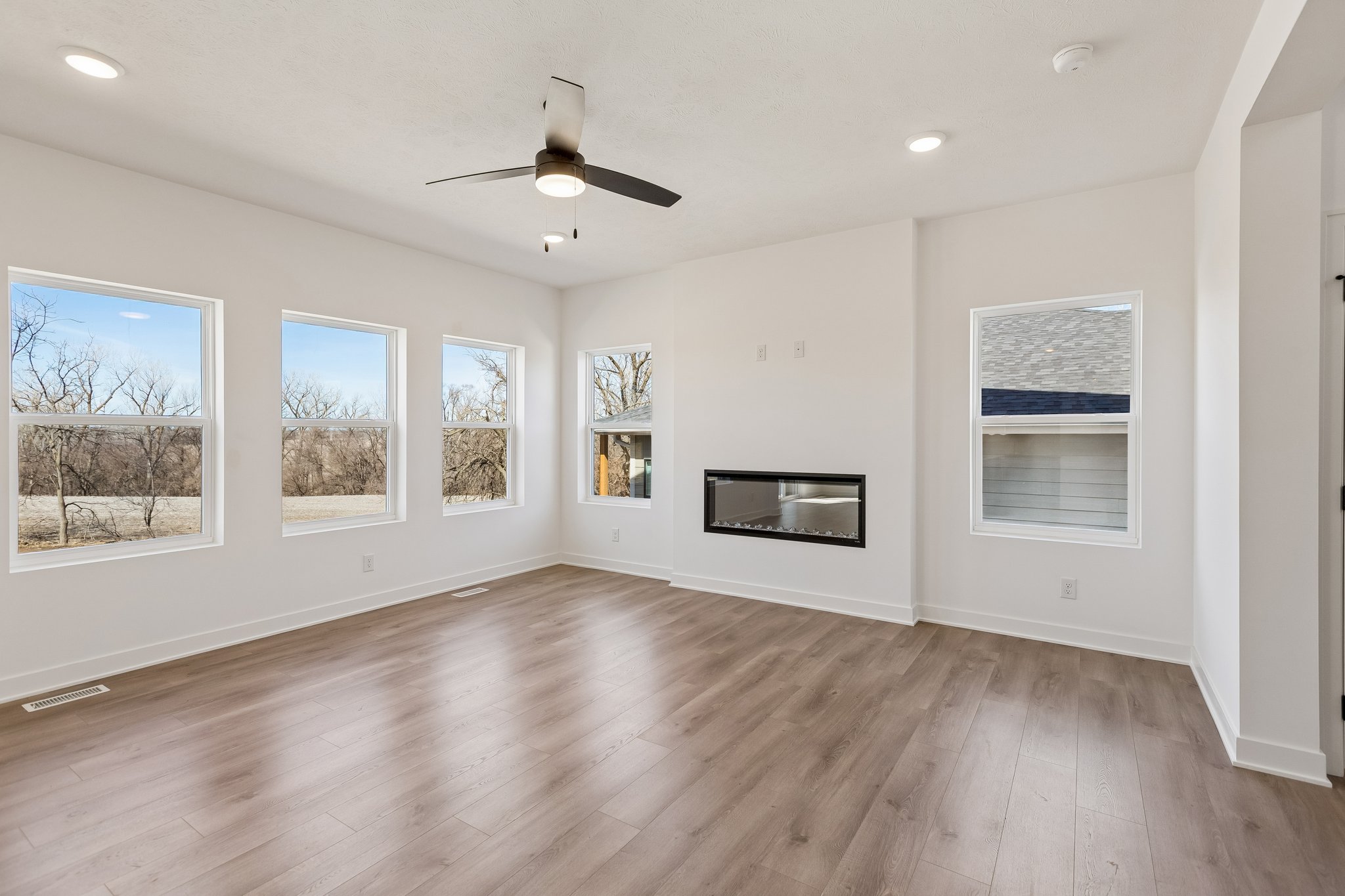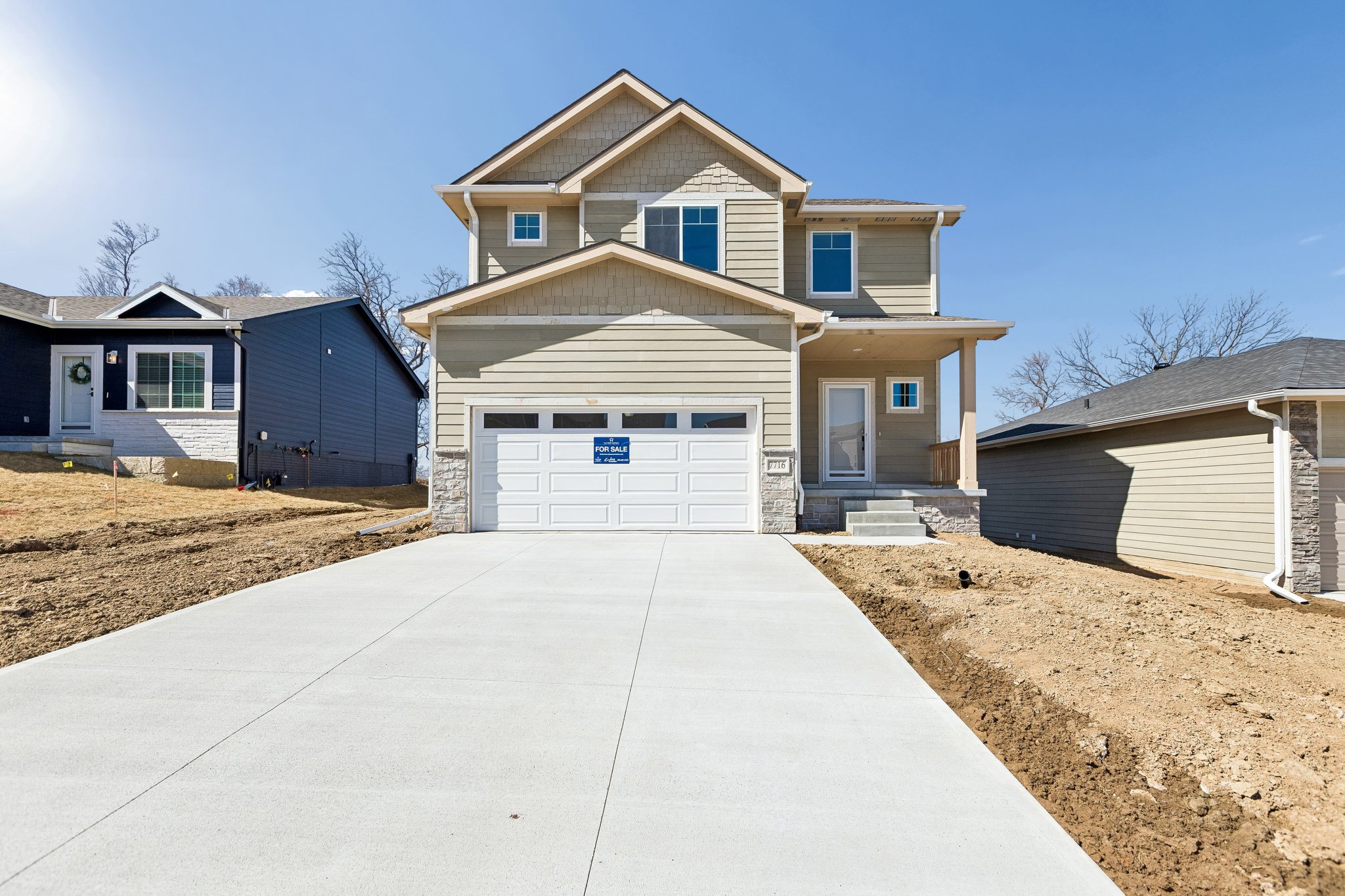 AMA. Fantastic new construction featuring the popular Crawford floor plan by The Home Company! This stunning 3-bedroom, 4-bath home offers a 2-car garage and 2,468 finished square feet with an impressive two-story entry and open-concept design. The light-filled living room showcases a floor-to-ceiling stone electric fireplace. The kitchen is beautifully appointed with quartz countertops, a 3×6 subway tile backsplash, gas range, and a spacious pantry. The second level provides three nicely sized bedrooms, two bathrooms, and convenient laundry. The finished lower level adds even more living space with a large rec room and half bath. Situated on a flat lot with a nice tree line and no rear neighbors, this home also includes a sprinkler system.